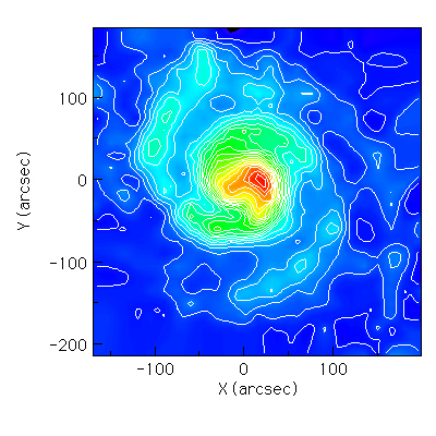 から3000万光年ほど離れた渦状銀河の、一酸化炭素が出す電波の画像です。