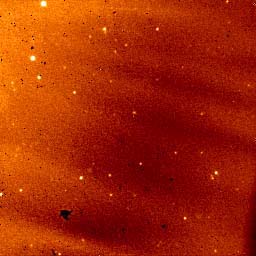 左の図は近赤外線観測における生データの(処理前の)画像、