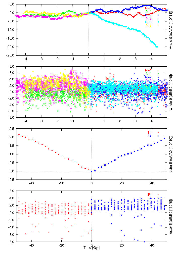 total energy dE/E_0 in our numerical integrations N_+/-1,2,3