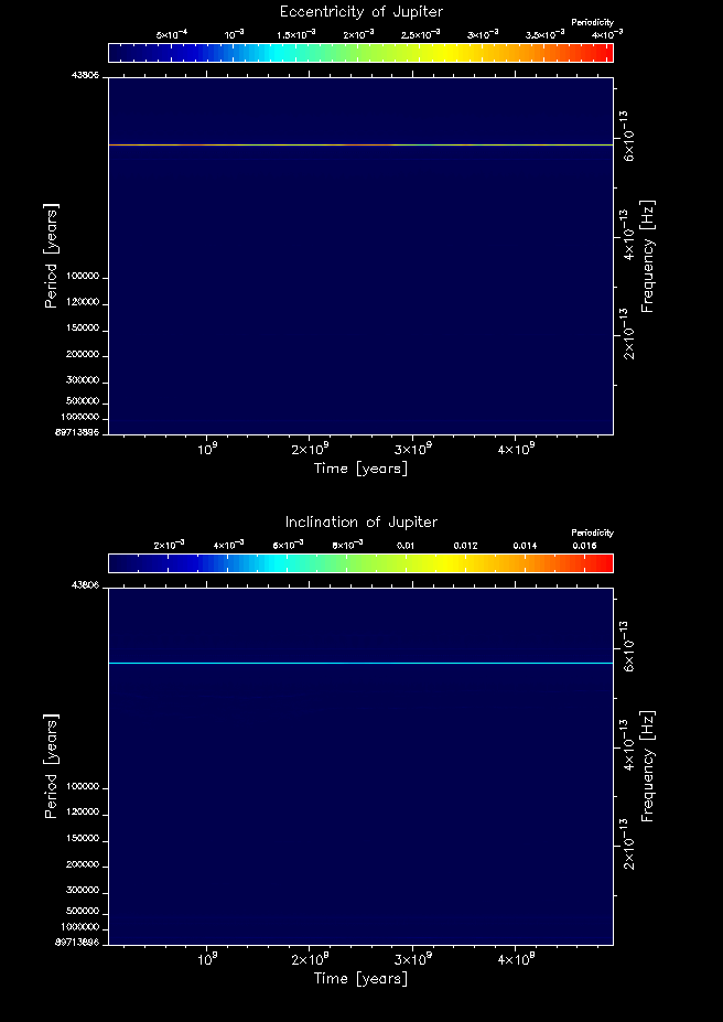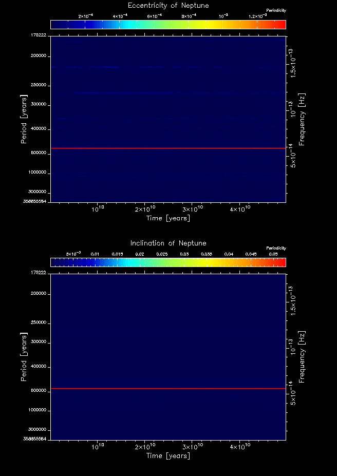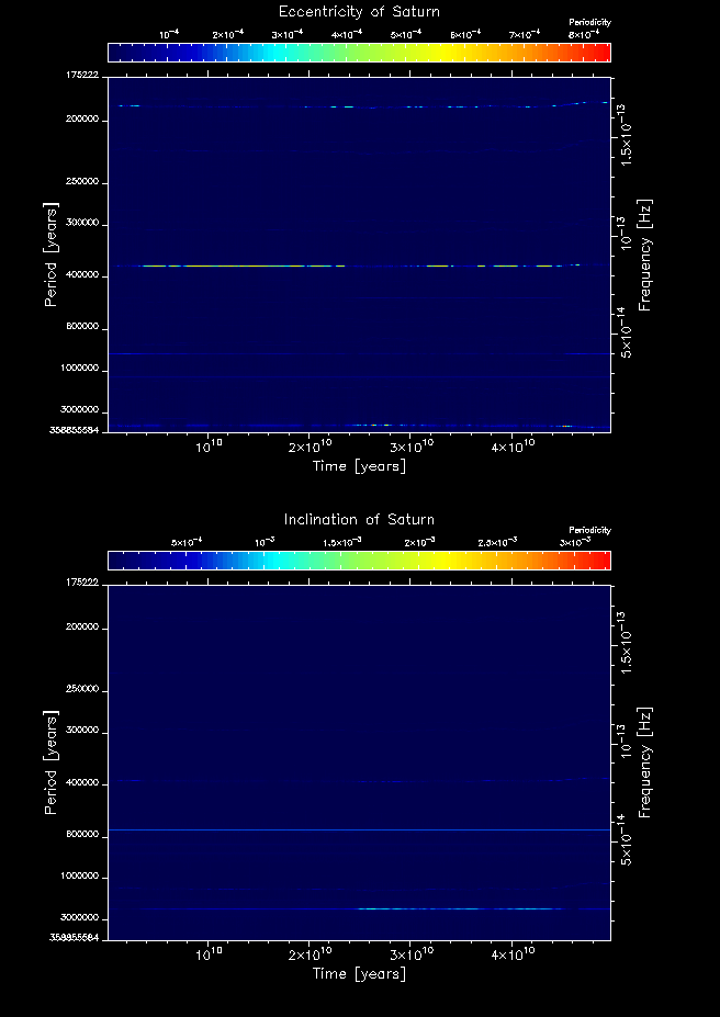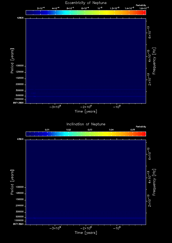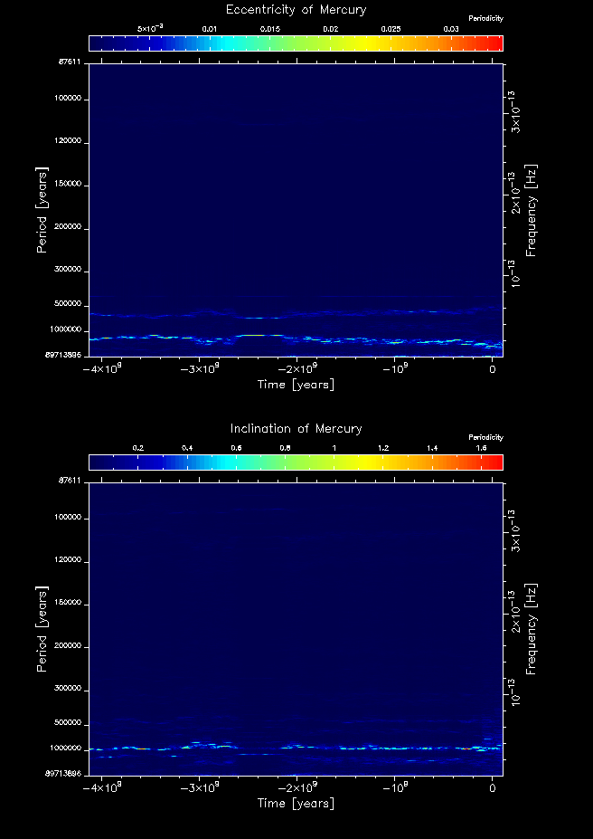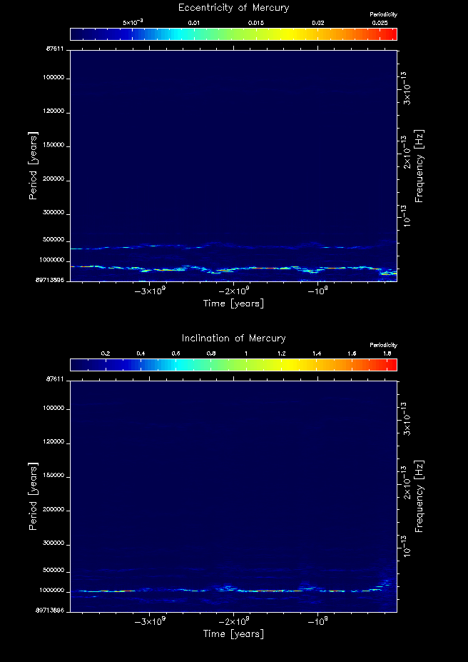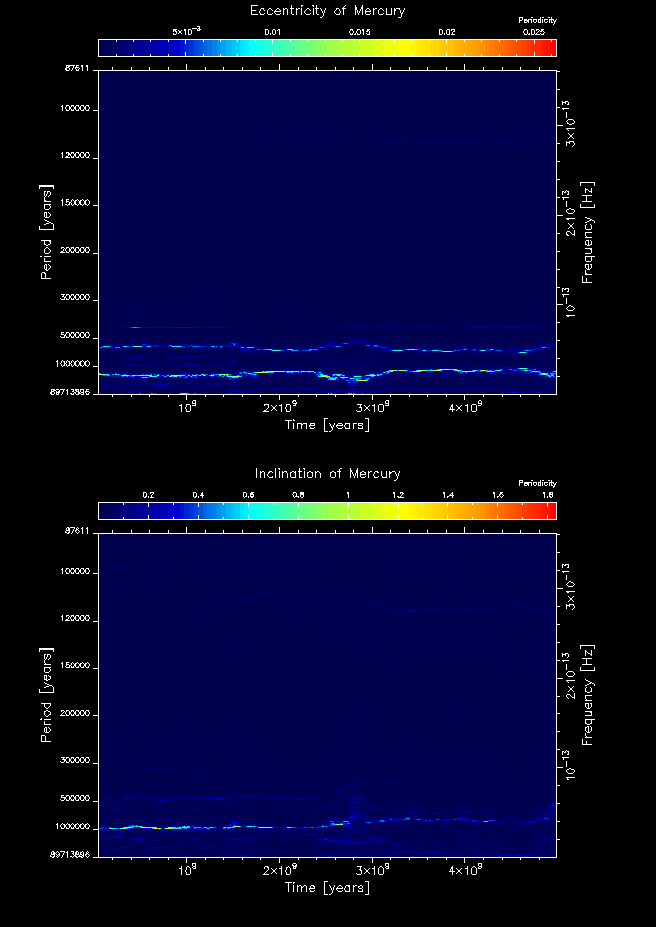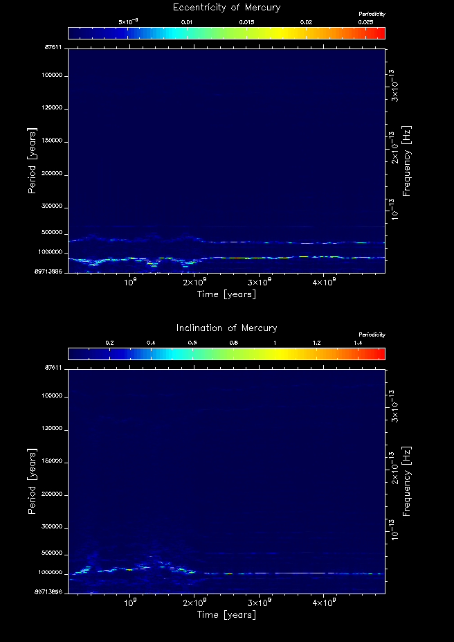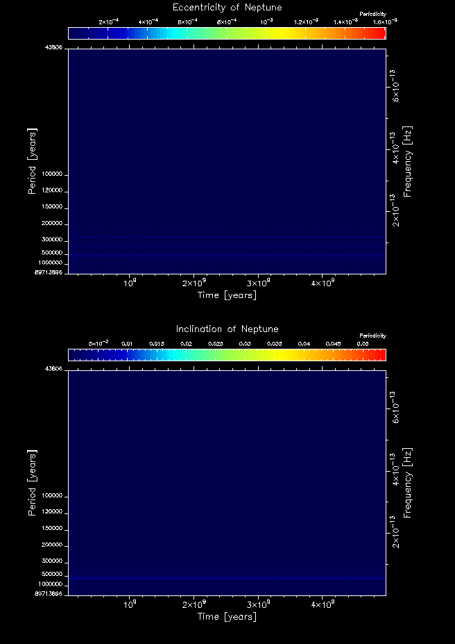 Time-frequency maps for each planet's eccentricity and inclination.