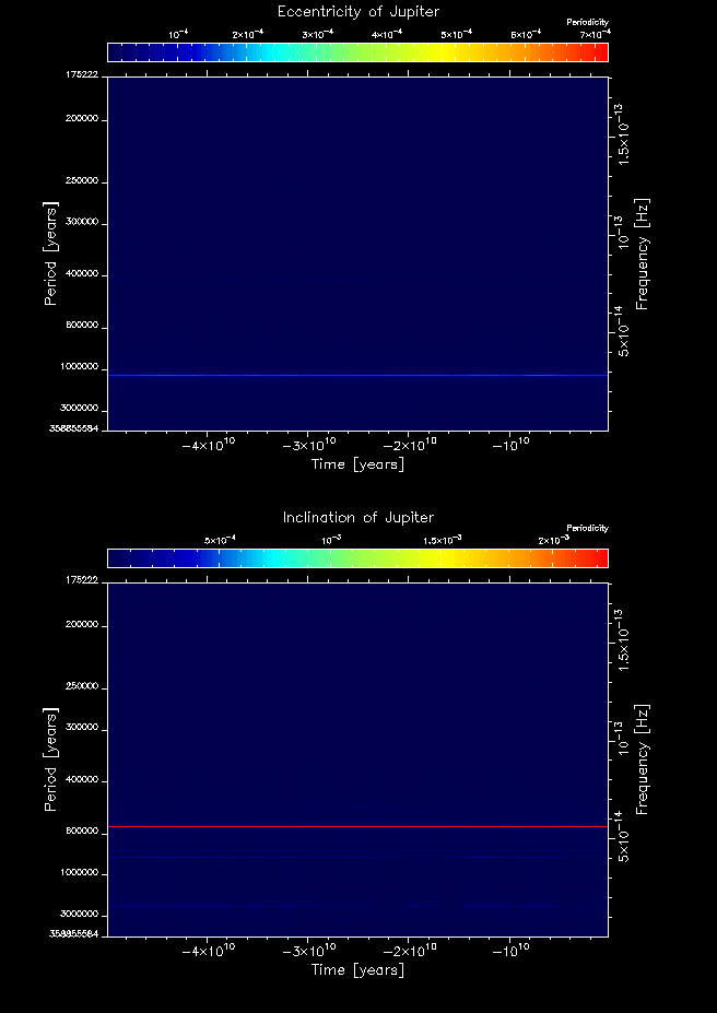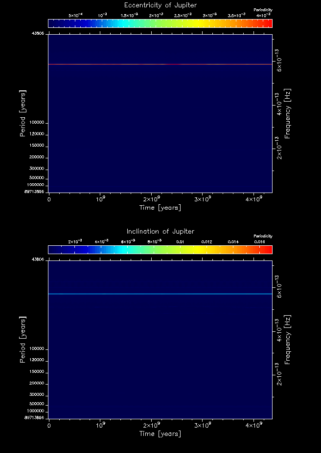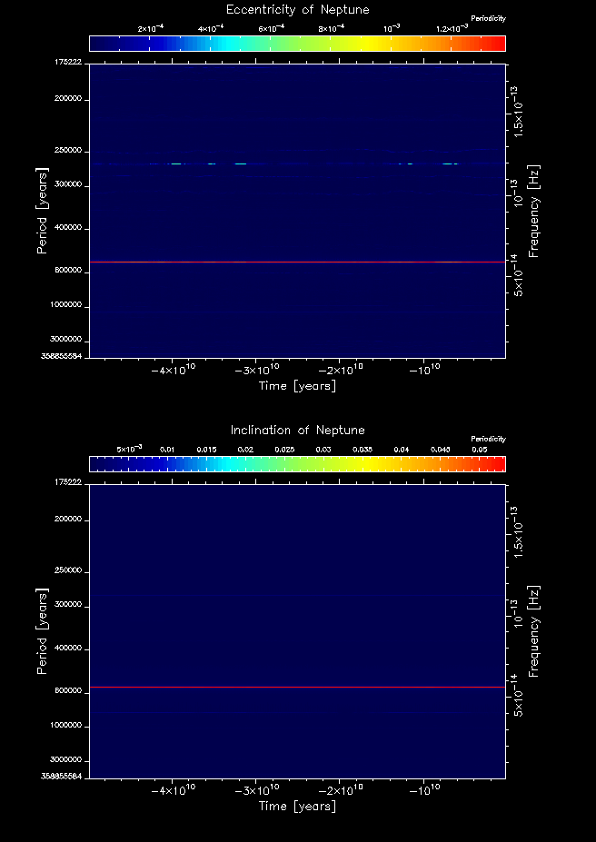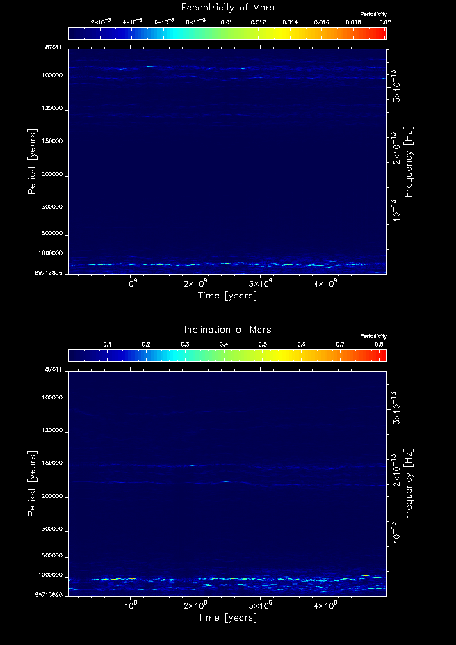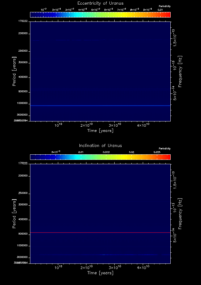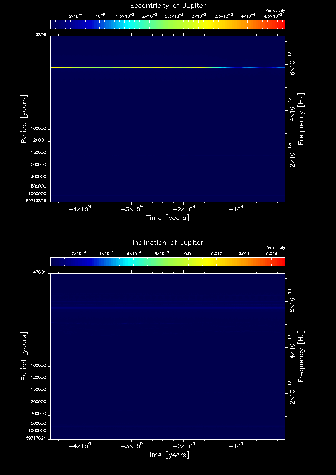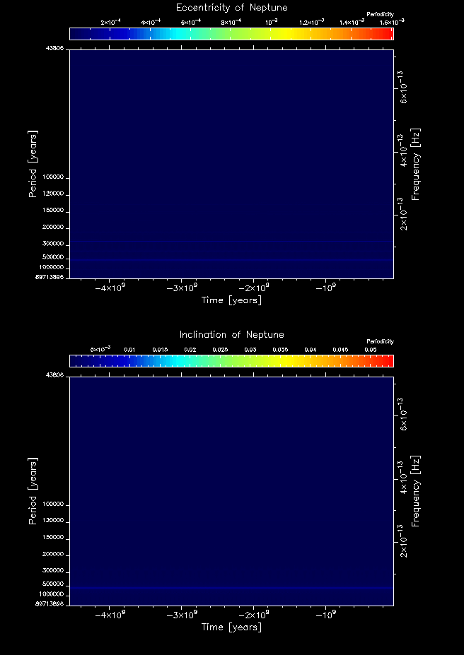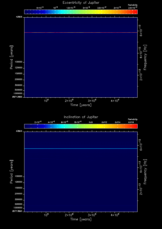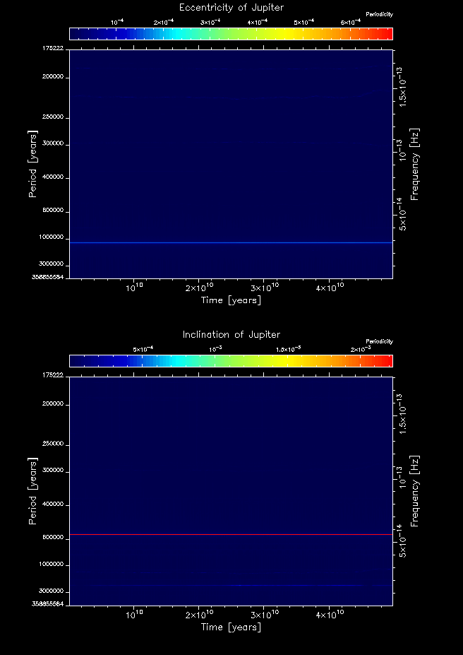 Time-frequency maps for each planet's eccentricity and inclination.