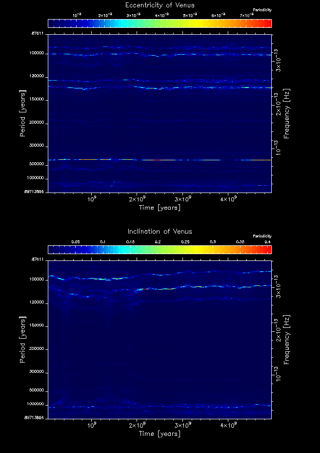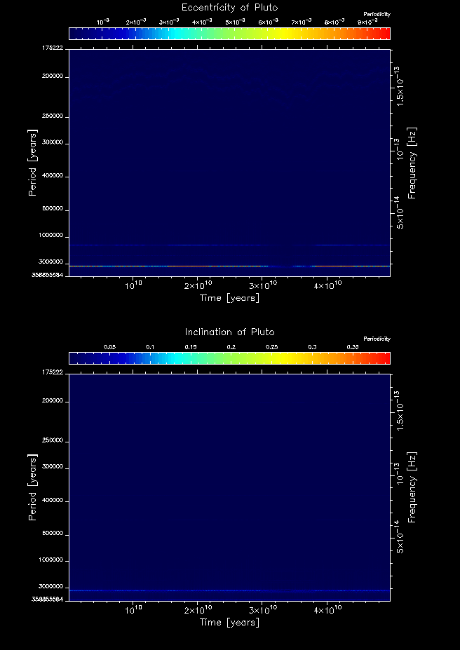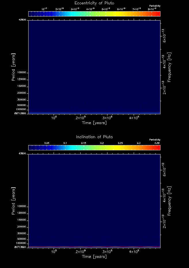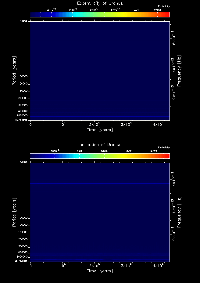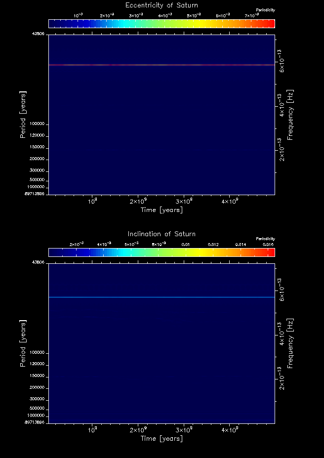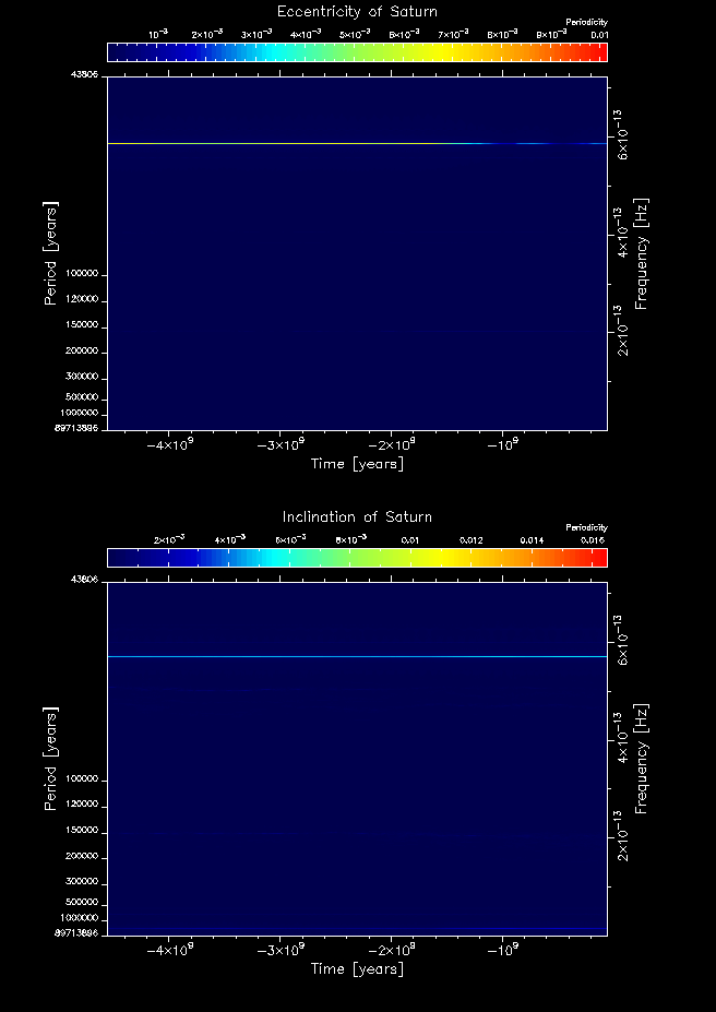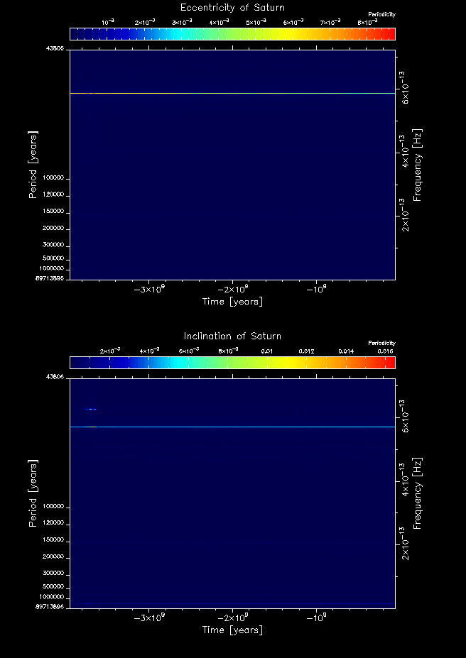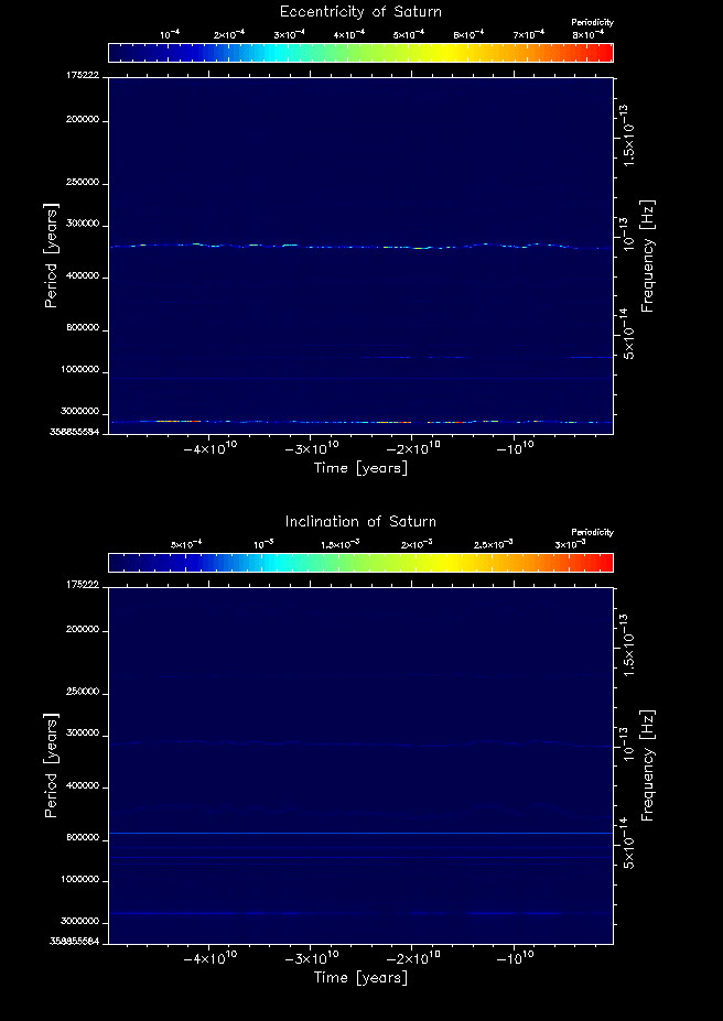 Time-frequency maps for each planet's eccentricity and inclination.