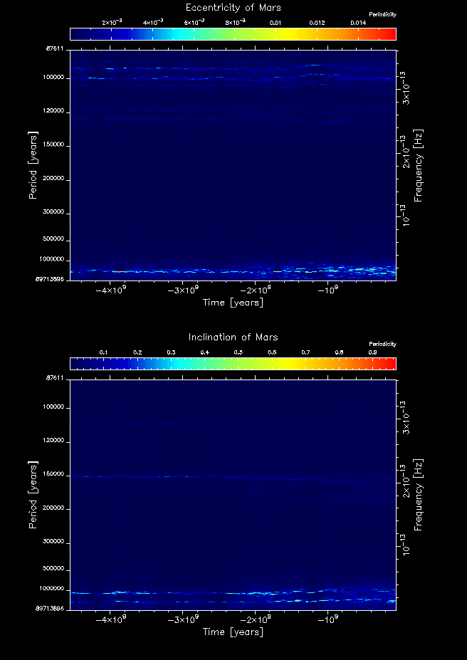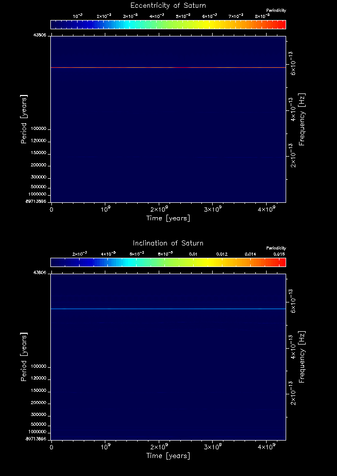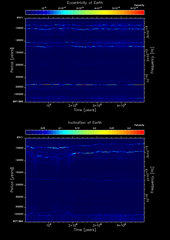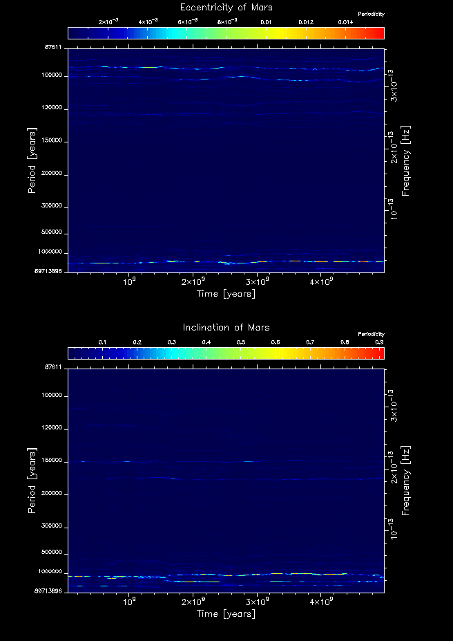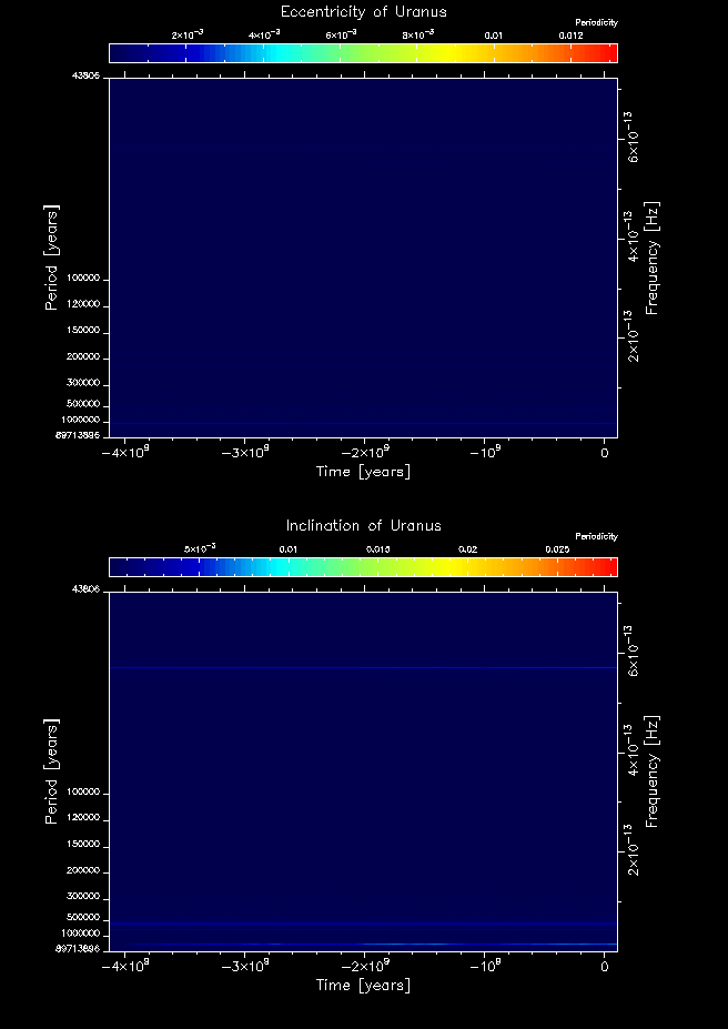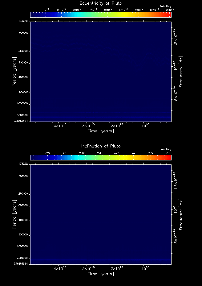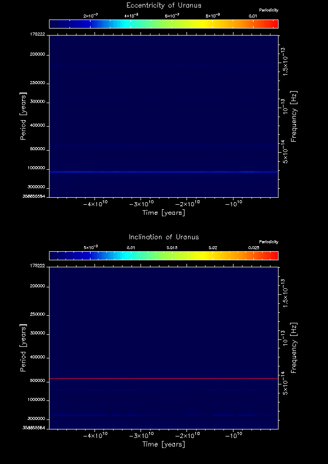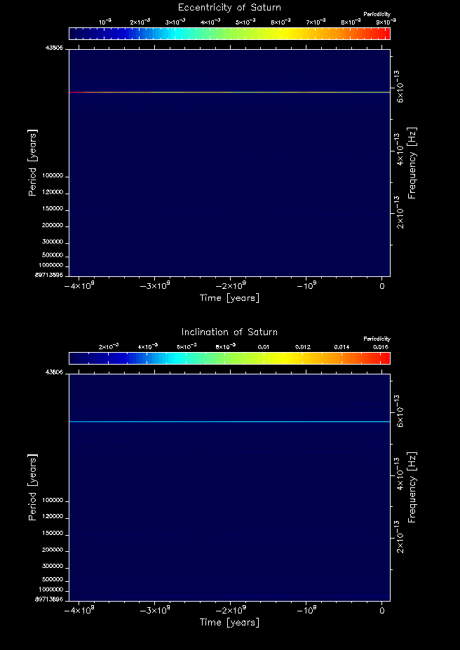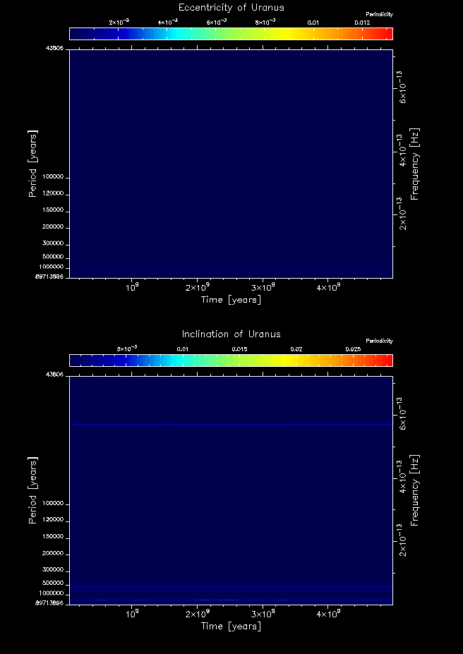 Time-frequency maps for each planet's eccentricity and inclination.