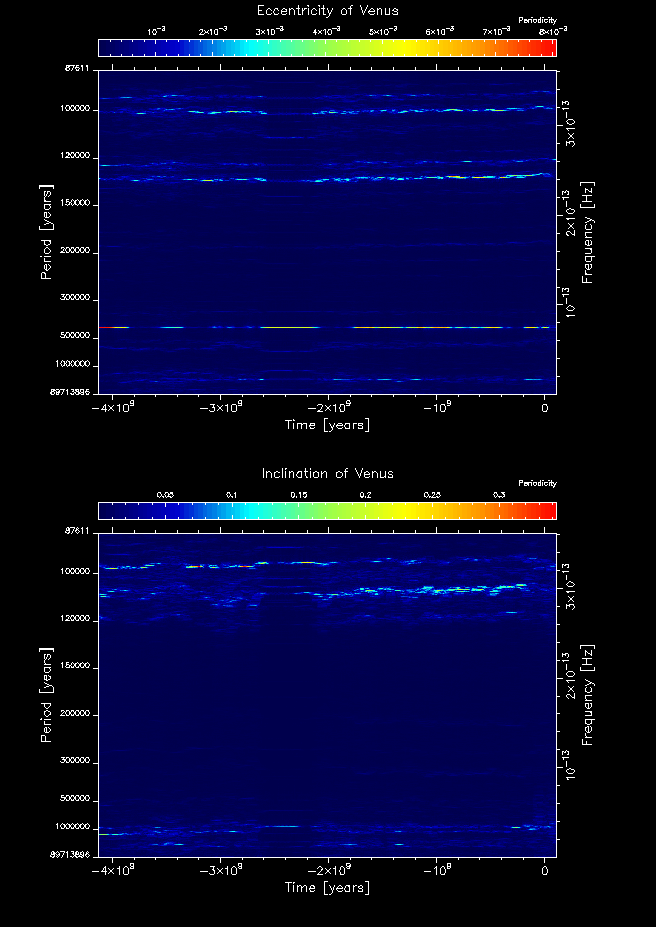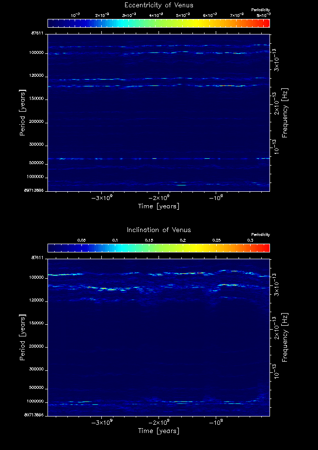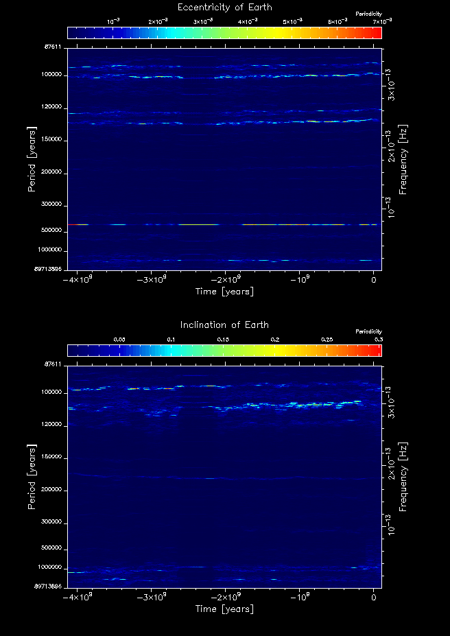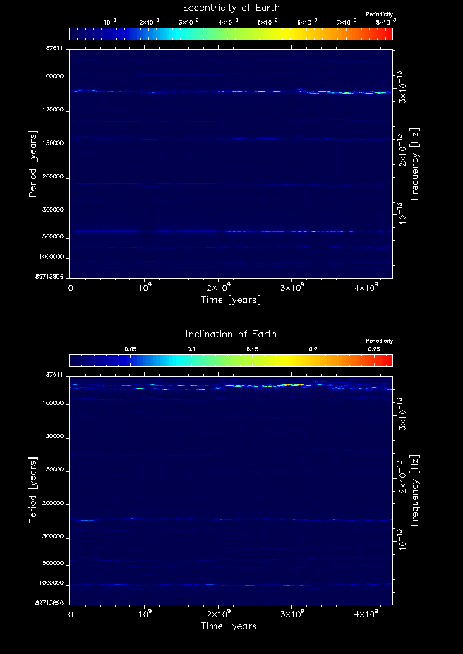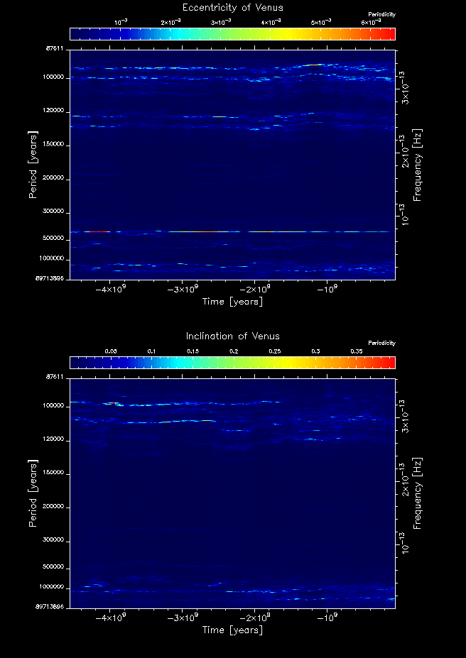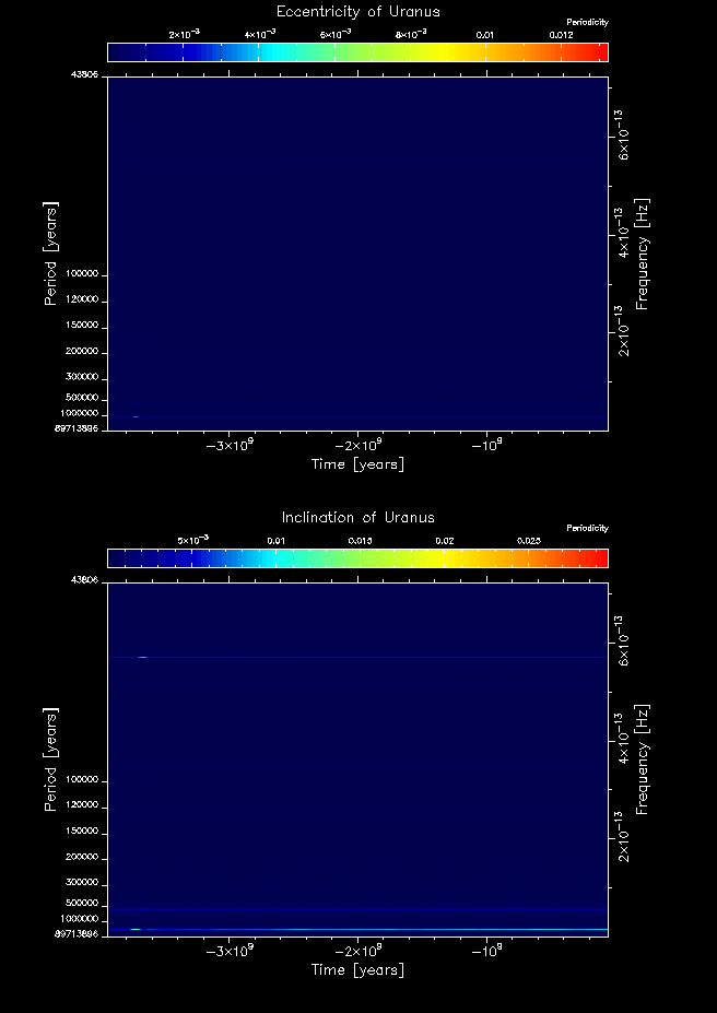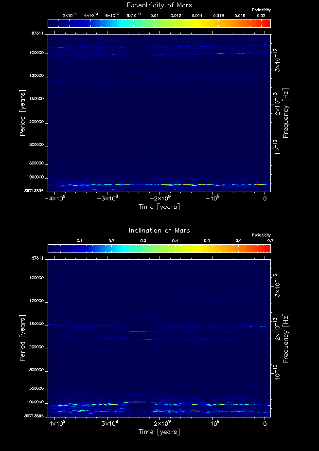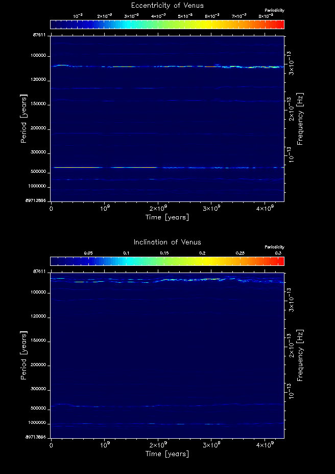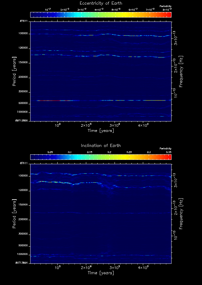 Time-frequency maps for each planet's eccentricity and inclination.