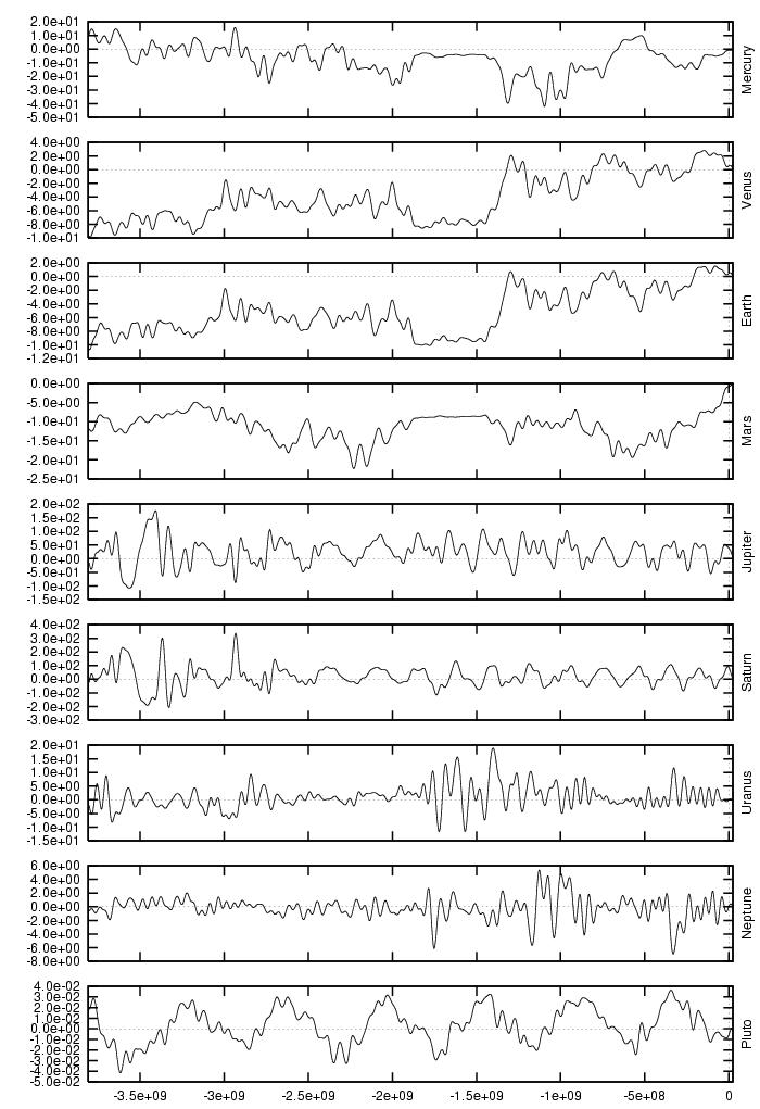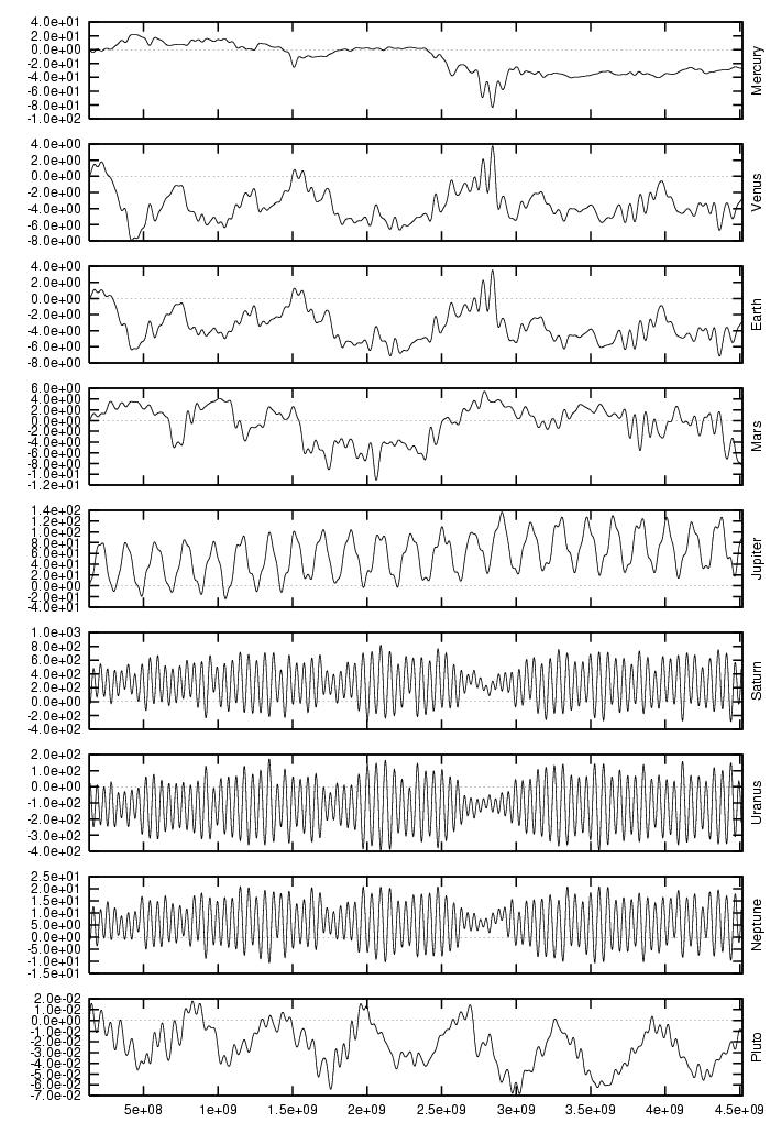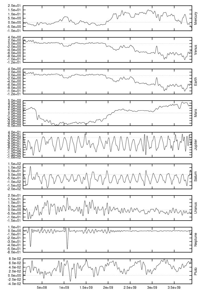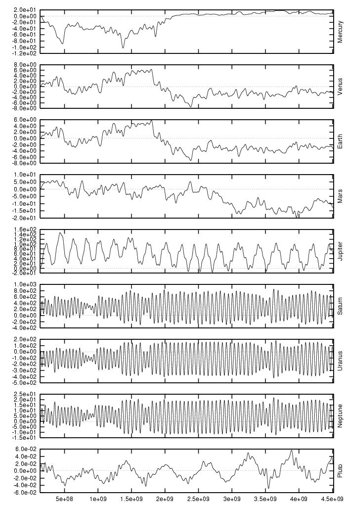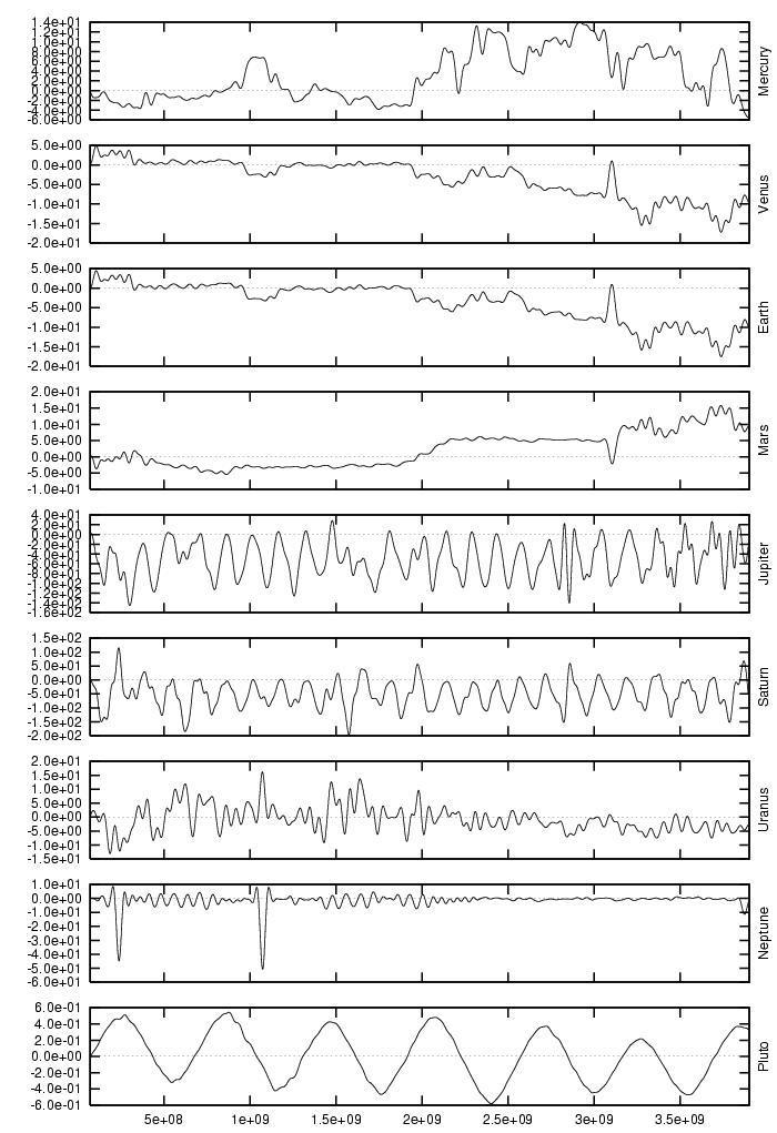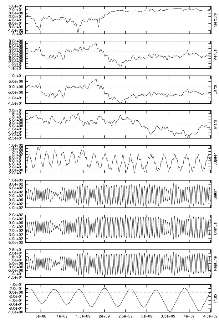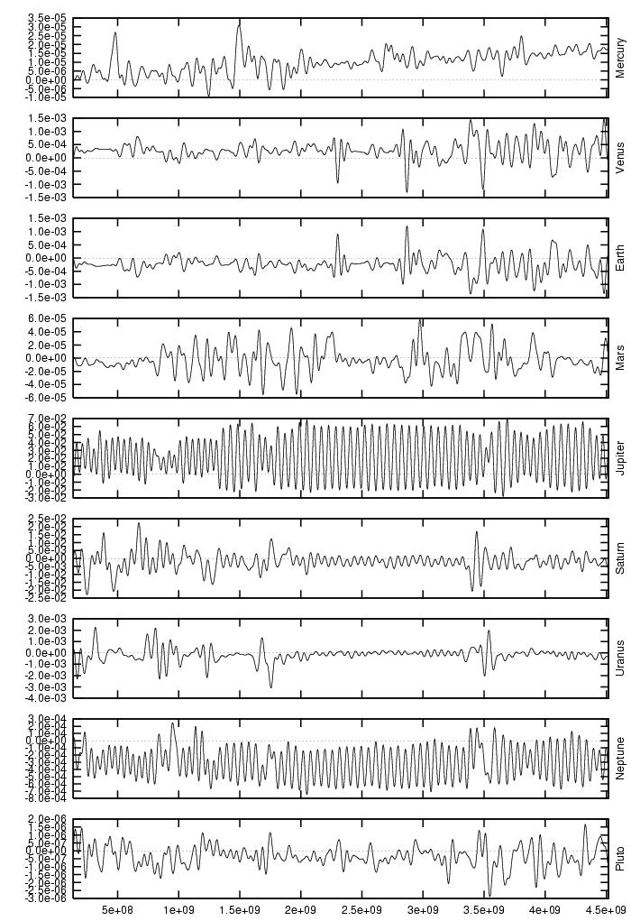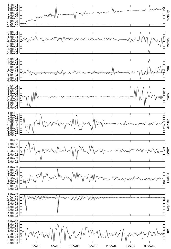orbital elements of each planet in each of our numerical integrations.