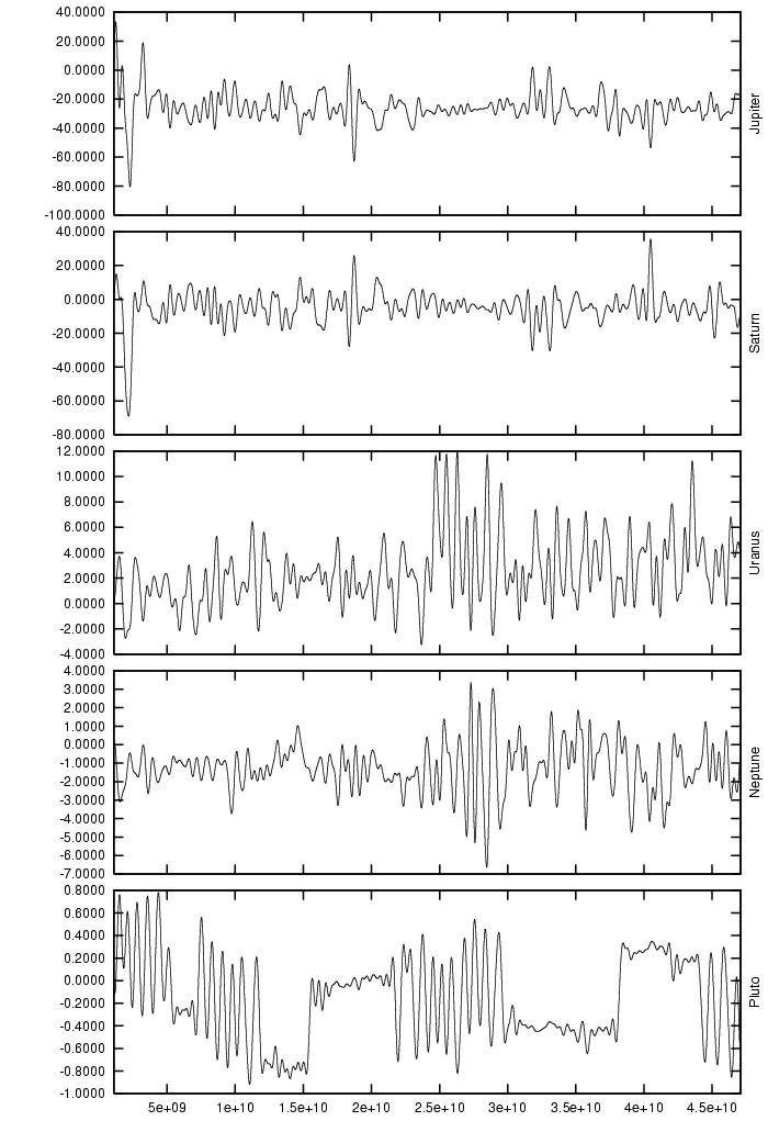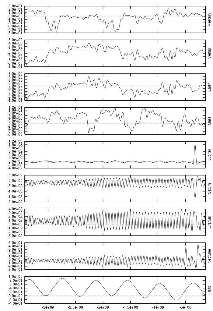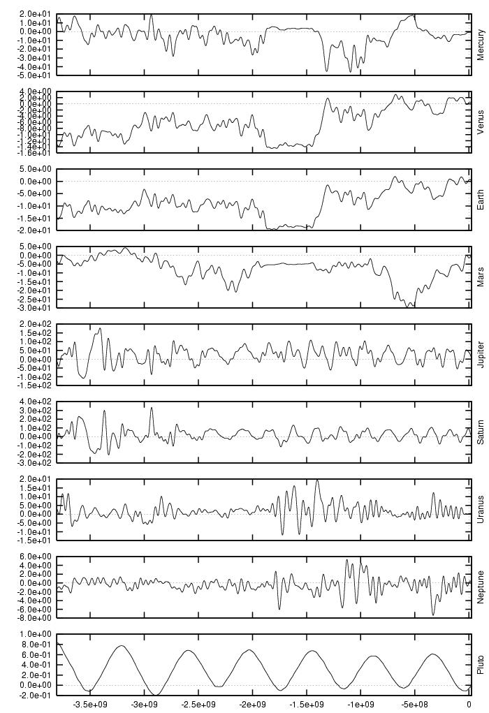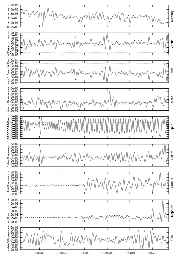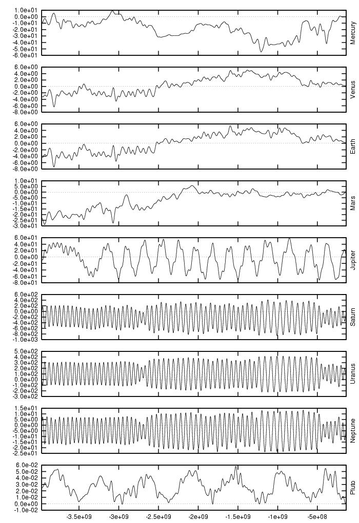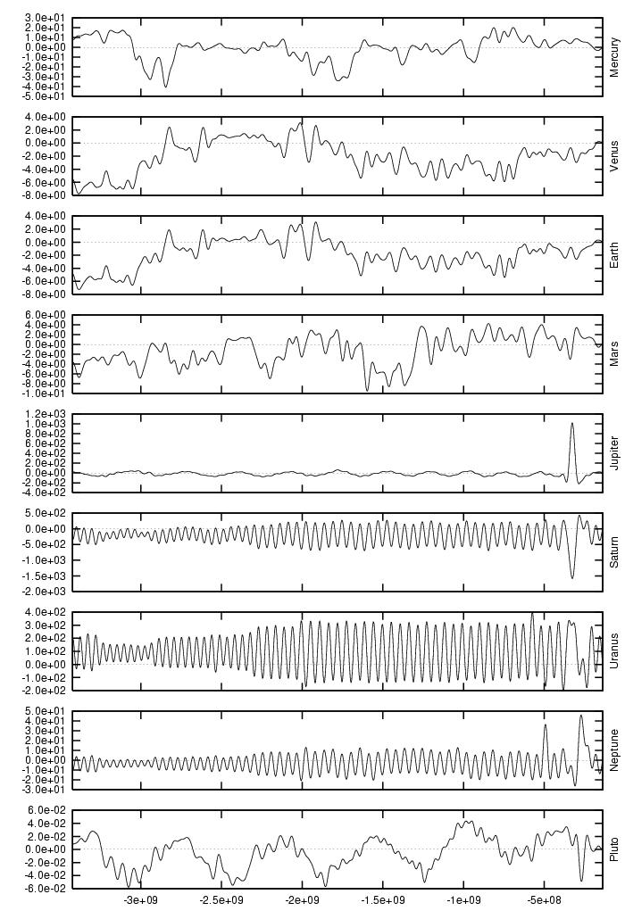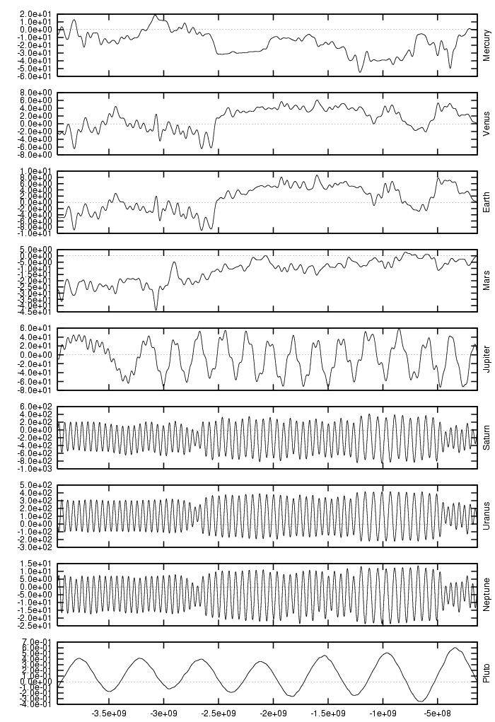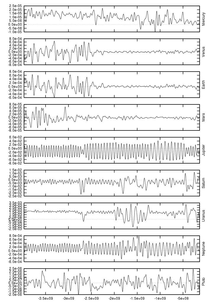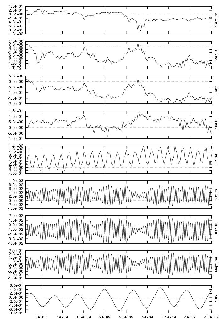 orbital elements of each planet in each of our numerical integrations.