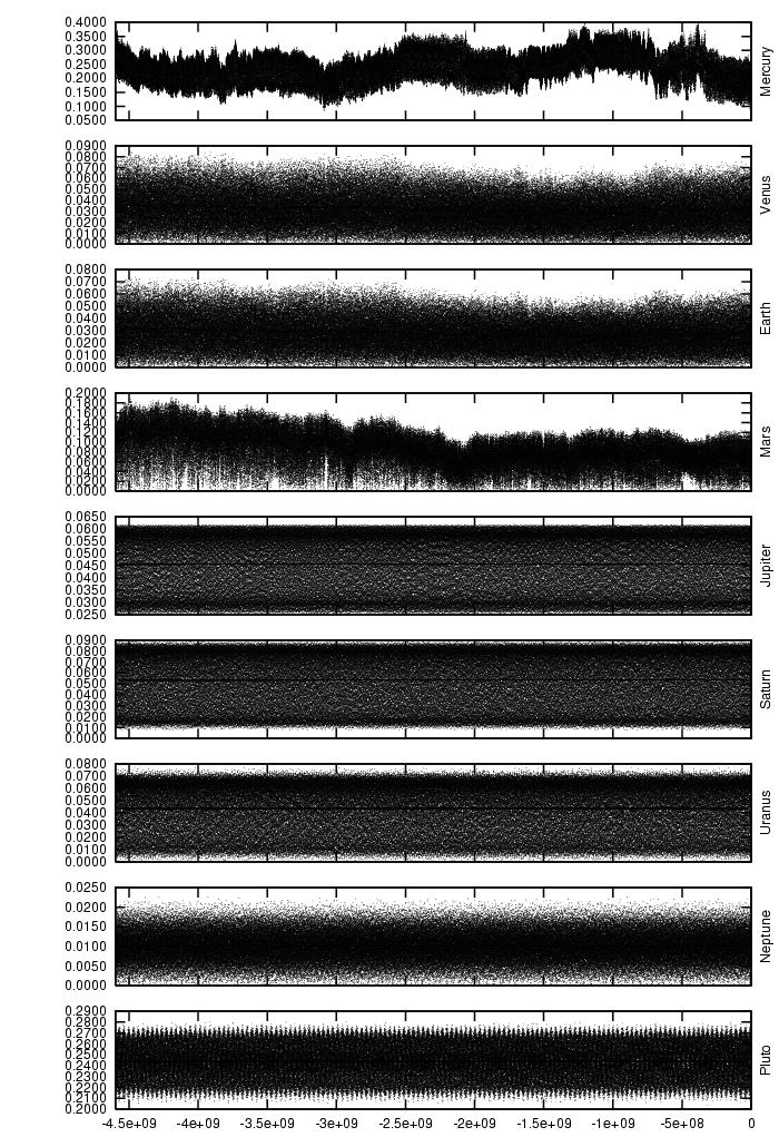 Raw data of each planetary orbital elements (a=semimajor axis,