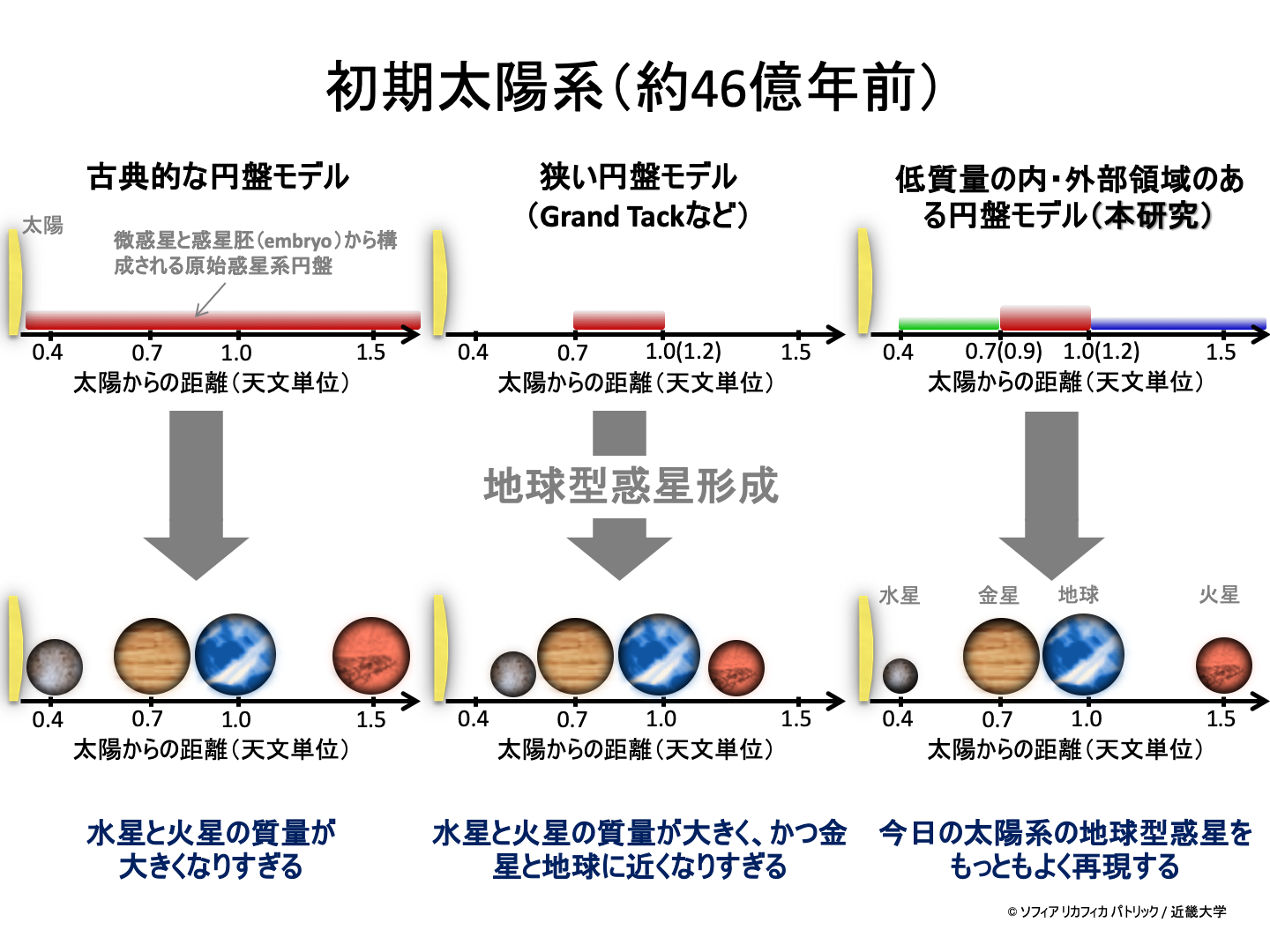 これは現在の金星-地球軌道の領域に多くの質量が集中し、且つ